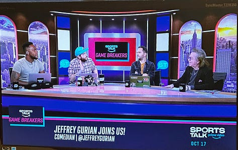 I was happy to be called back this month but sad to learn the show was not being renewed, … but again happy to learn I was being called back because they told me I was one of their favorite guests. I still didn’t know anything about sports, so just told a lot of fun stories, and this time they had added a third fun co-host named Baker Machado, who also made me feel very welcome. We had tons of laughs and I’m sure they and Jeremy will be going on to another fun show.